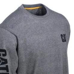 CAT Apparel Shirts: Men’s 1510034 004 Heather Grey Trademark Banner Long-Sleeve Tee Shirt