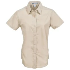 The buttons down the front have been dyed to match the shirt to give you an overall look of perfectly matched fashion, while contrasting fabric in black highlights the inside of the collar. The overall effect is one of comfort, polished style, and total ease of movement. The Port Authority L508 Women’s Light Stone Short Sleeve Shirt – because a real woman needs a really nice button-up.